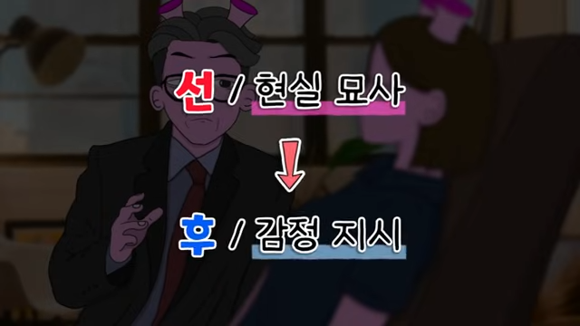 앞의 말을 부정할 수 없는 사실을 말한 후 뒤에 감정 지시를 내리면 저항하지 않고 따르게 된다,