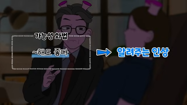 어떻게 생각해? 그래도 될까? 라는 의문문을 뒤에다 붙여 상대방에게 동기부여를 이끌어 낸다.