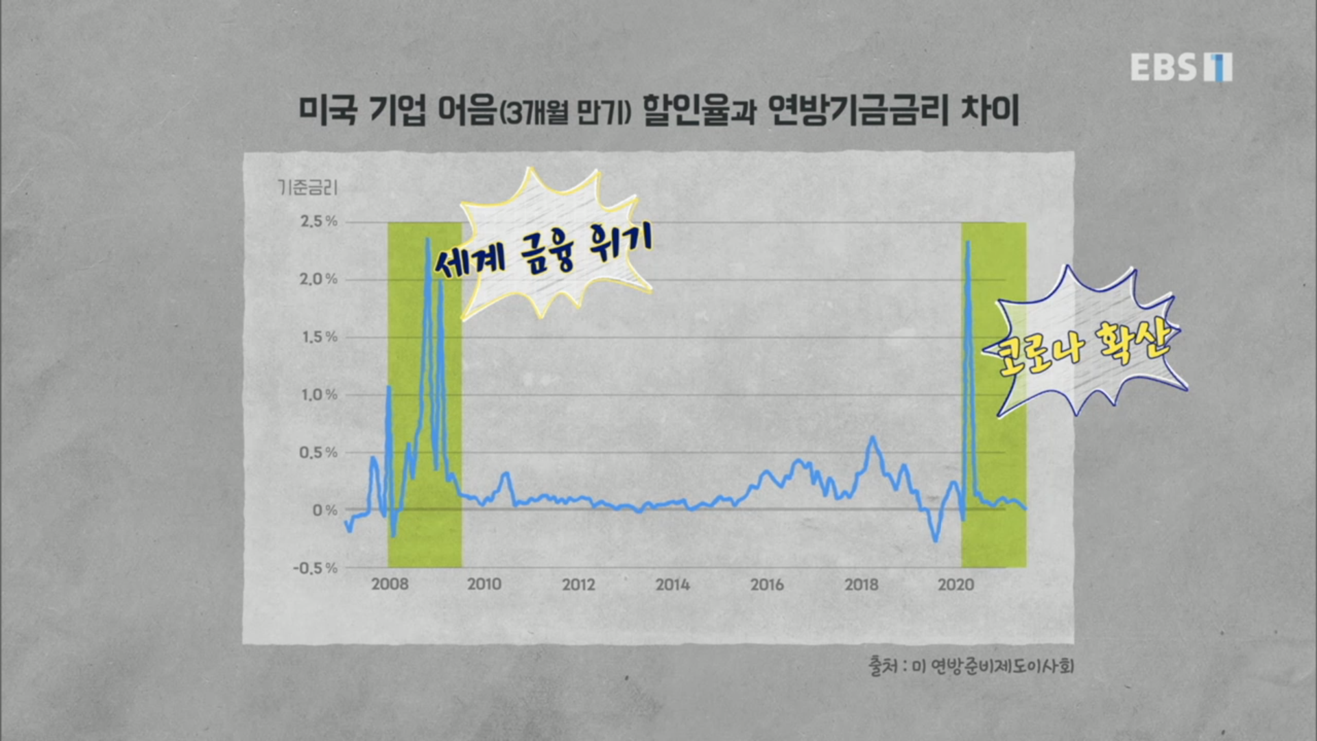 - 상업 어음과 연방 자금 금리 차이 : 미국에서 흔히 사용되는 재정 압박을 측정할 수 있는 지수