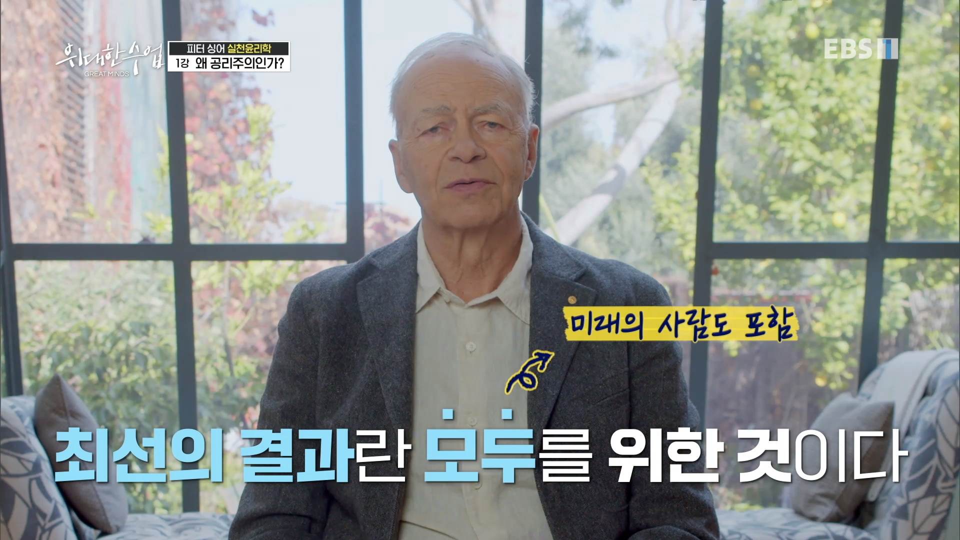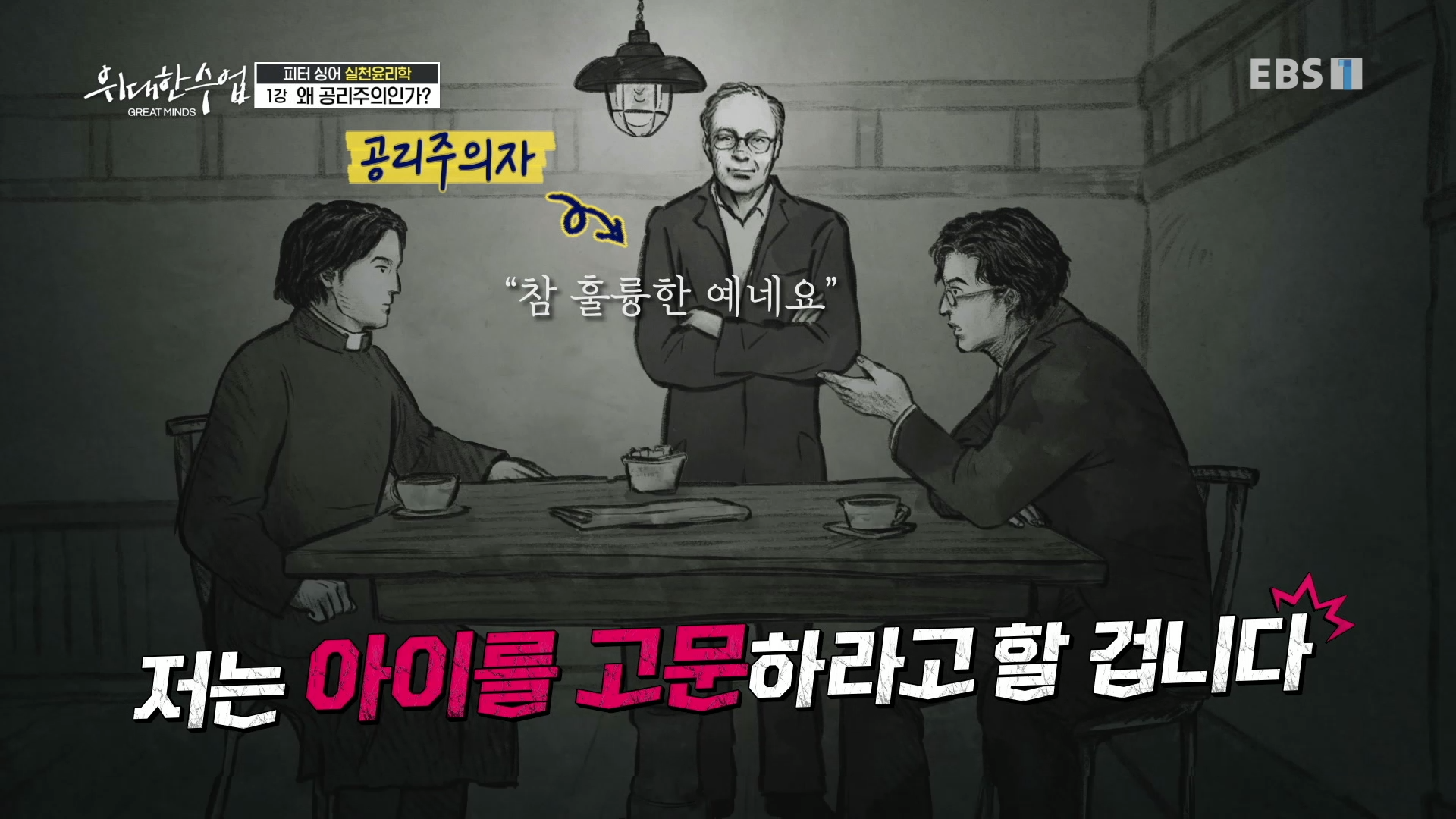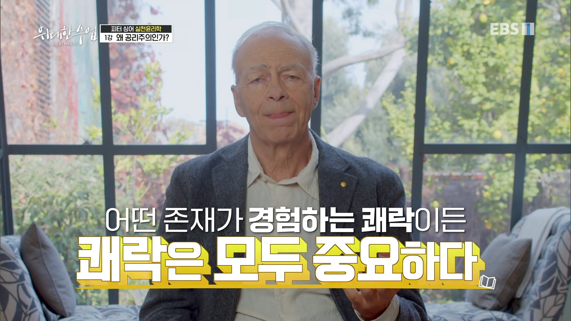 피터 싱어 - 실천윤리학 이전 차시 [위대한 수업 요약] 피터 싱어 - 왜 공리주의인가? 실천윤리학 - 1강. 왜 공리주의인가? 위대한 수업 다시 보기 링크 : https://www.ebs.co.kr/tv/show?prodId=411911&lectId=60..