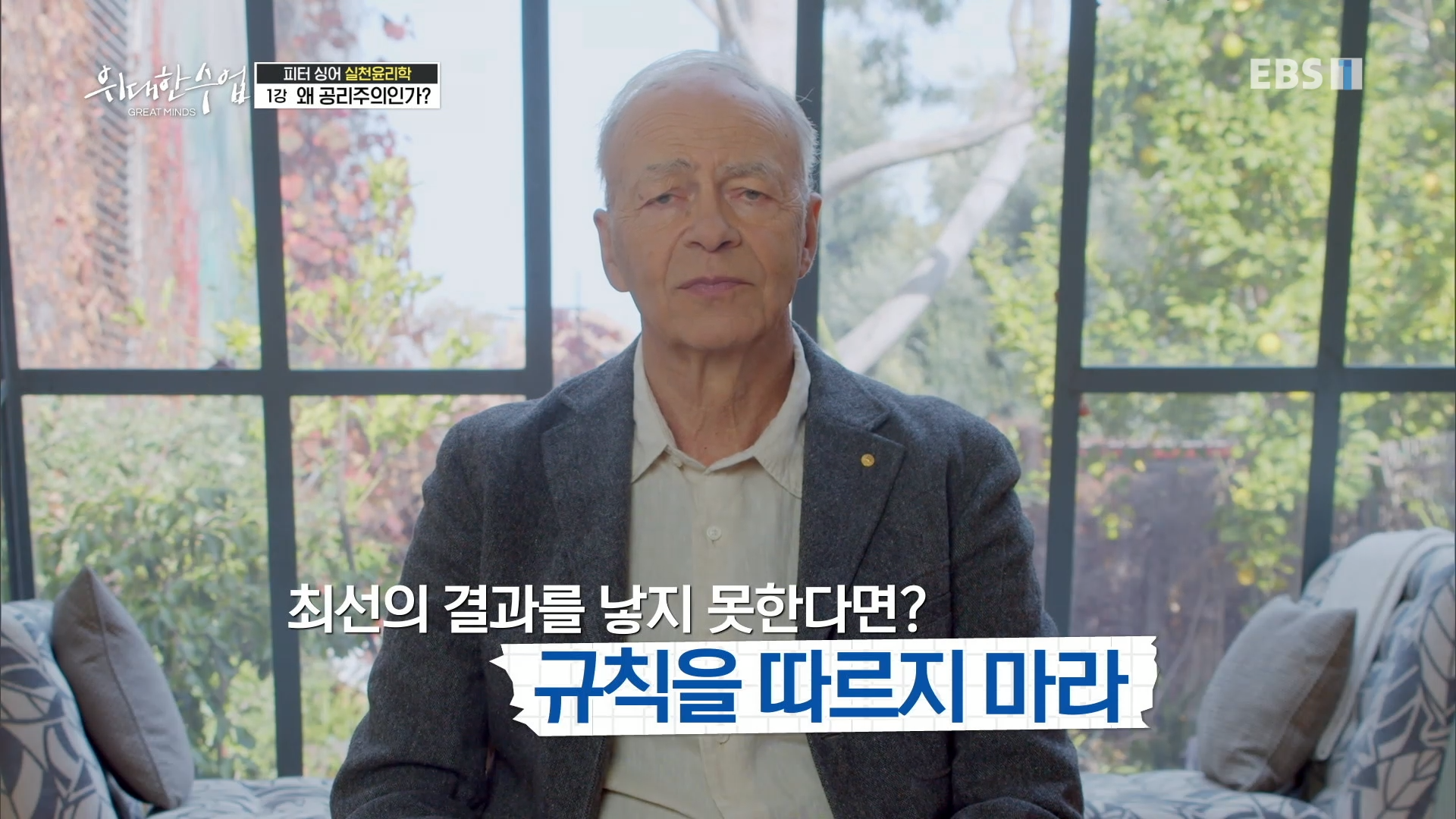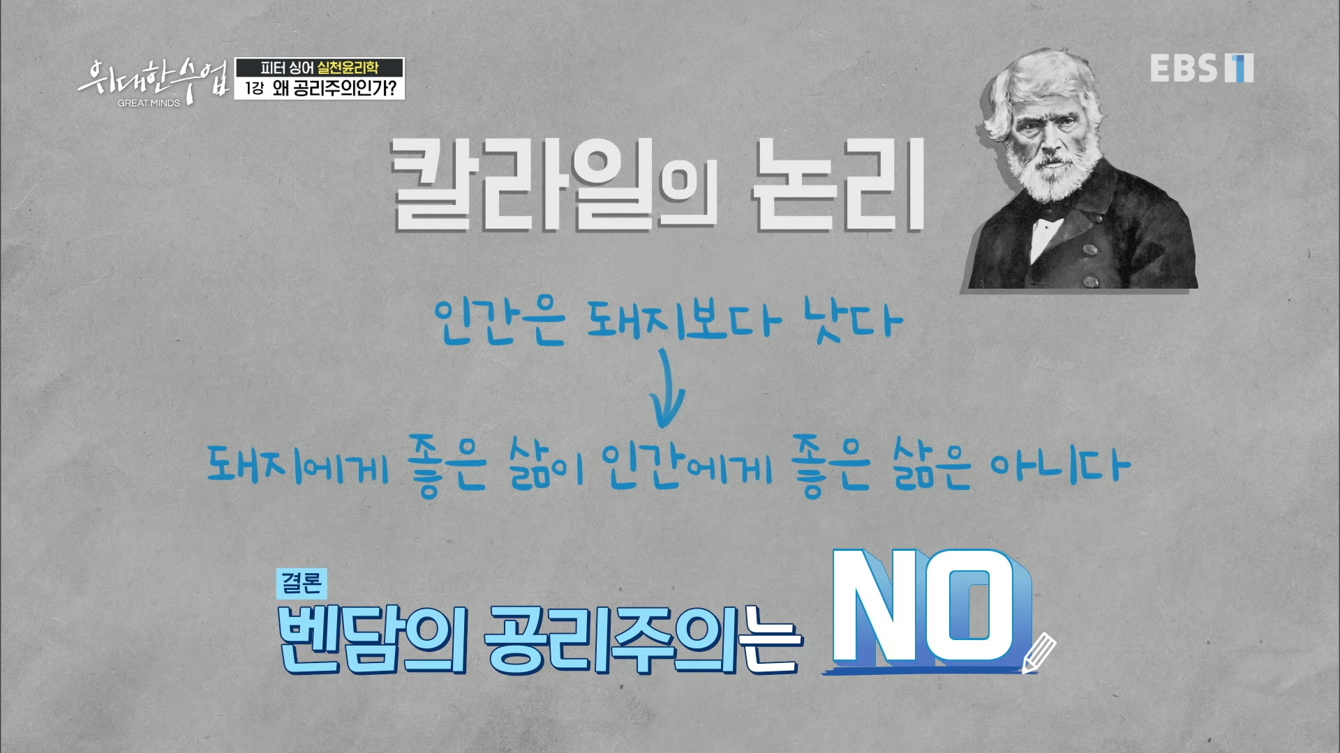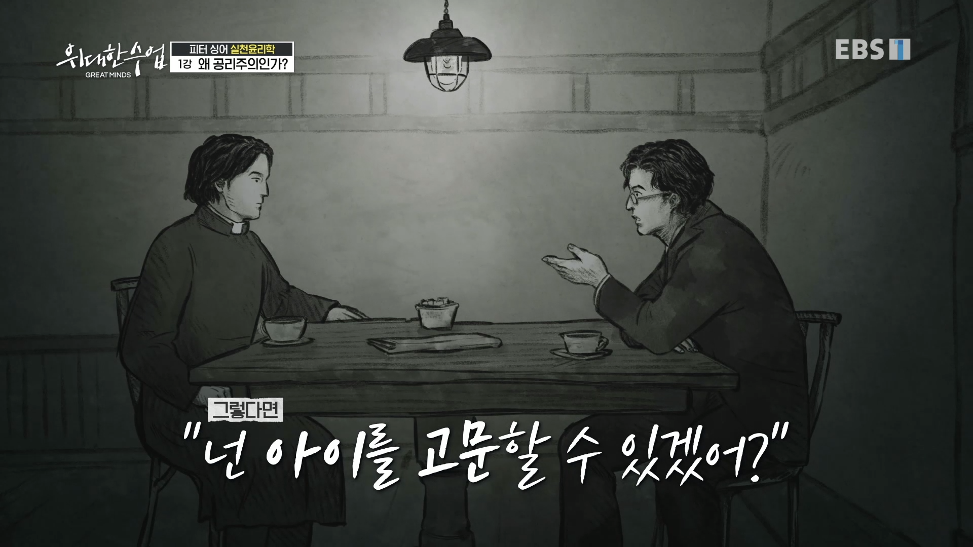 피터 싱어 - 실천윤리학 이전 차시 [위대한 수업 요약] 피터 싱어 - 왜 공리주의인가? 실천윤리학 - 1강. 왜 공리주의인가? 위대한 수업 다시 보기 링크 : https://www.ebs.co.kr/tv/show?prodId=411911&lectId=60..