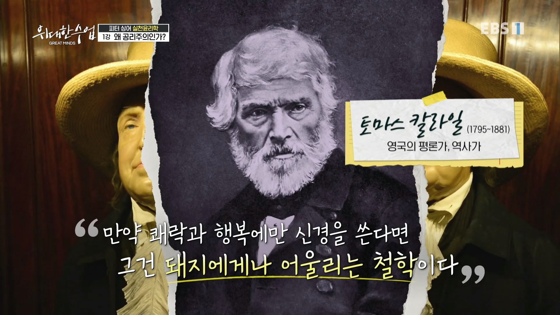 칼라일의 논리 : 인간은 돼지보다 낫다. 돼지에게 좋은 삶이 인간에게 좋은 삶은 아니다.