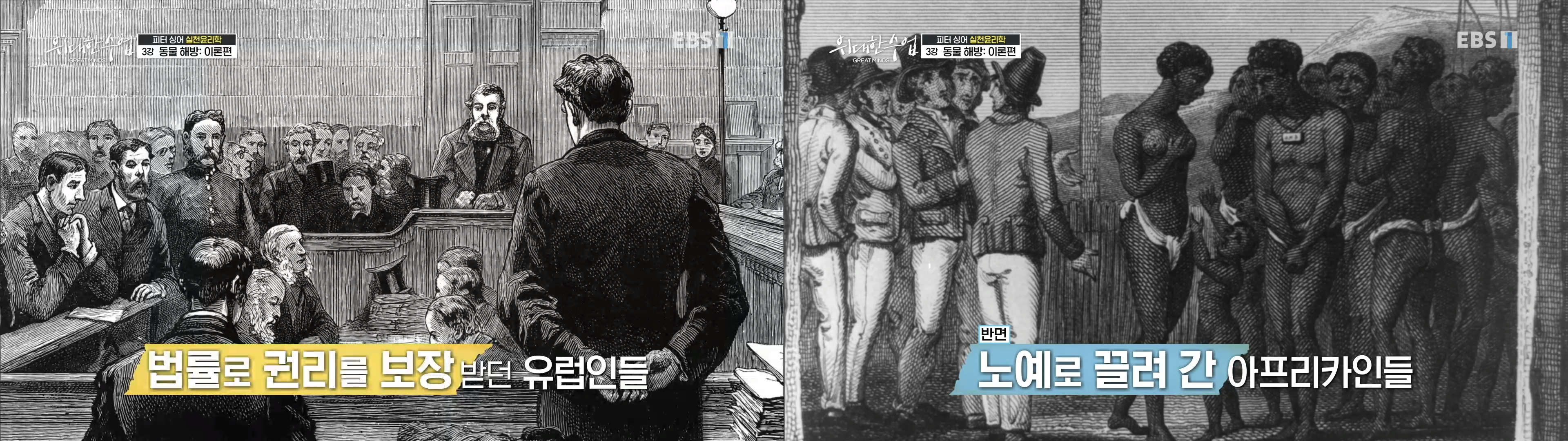 - 인간의 권리에 구분을 둬서는 안 된다 → 종 차별에 대해서는?