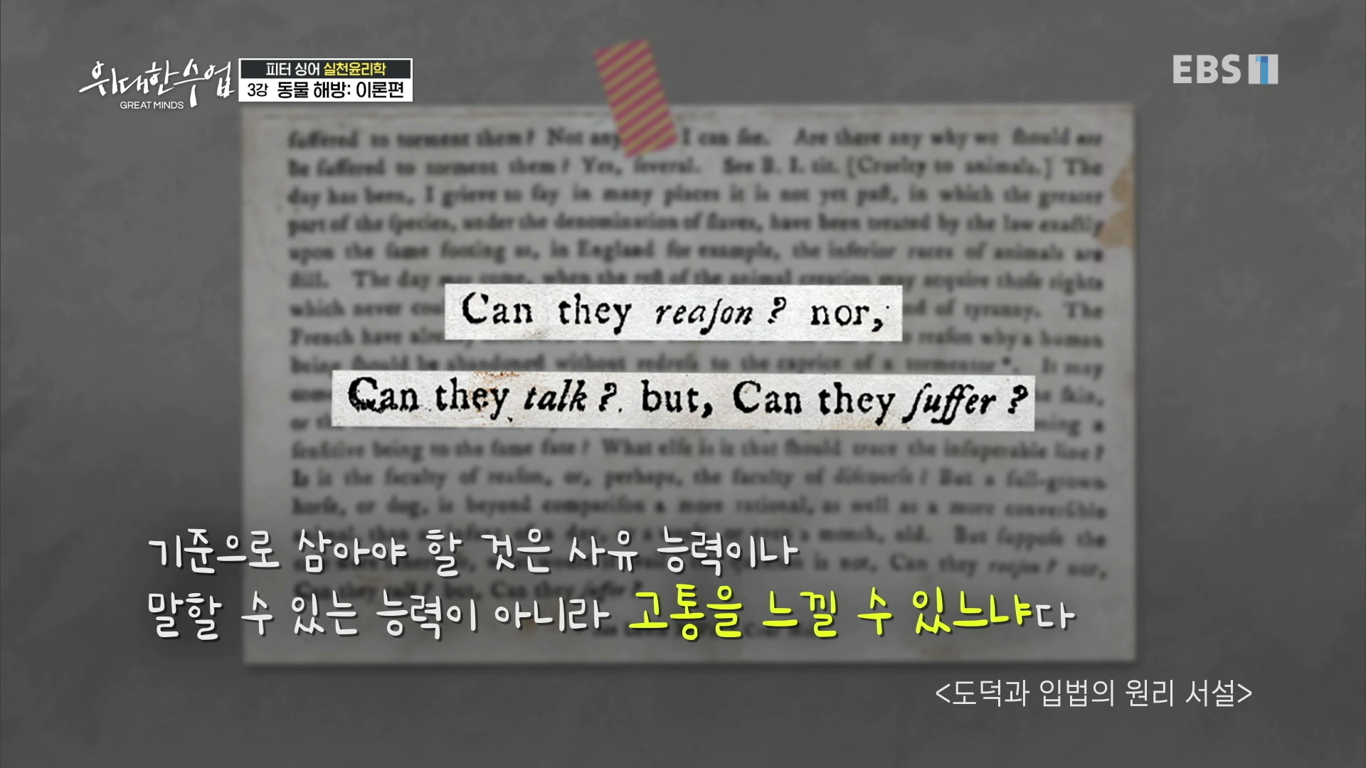 - 기준으로 삼아야 할 것은 '고통을 느낄 수 있는가?'2이다.
