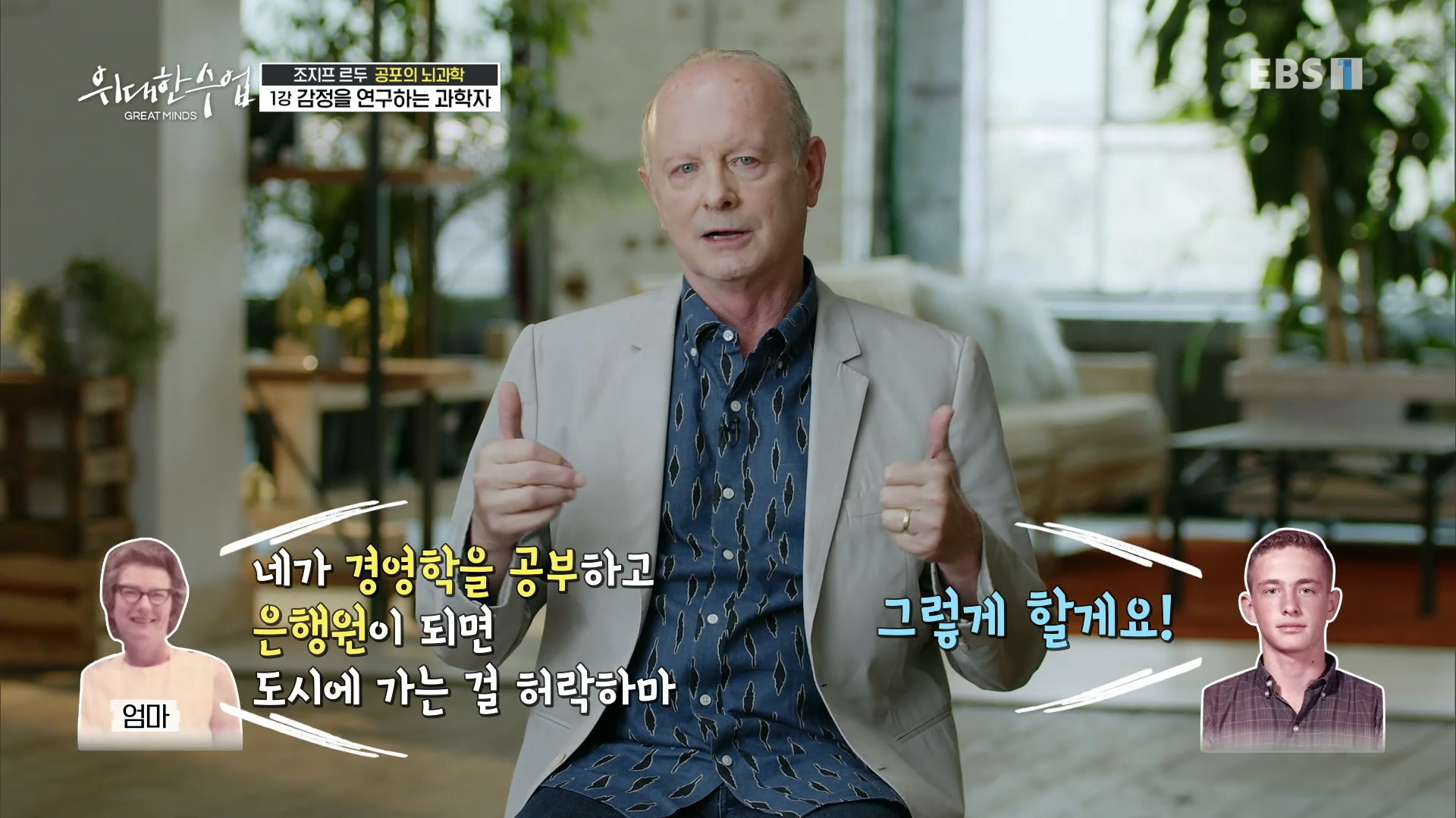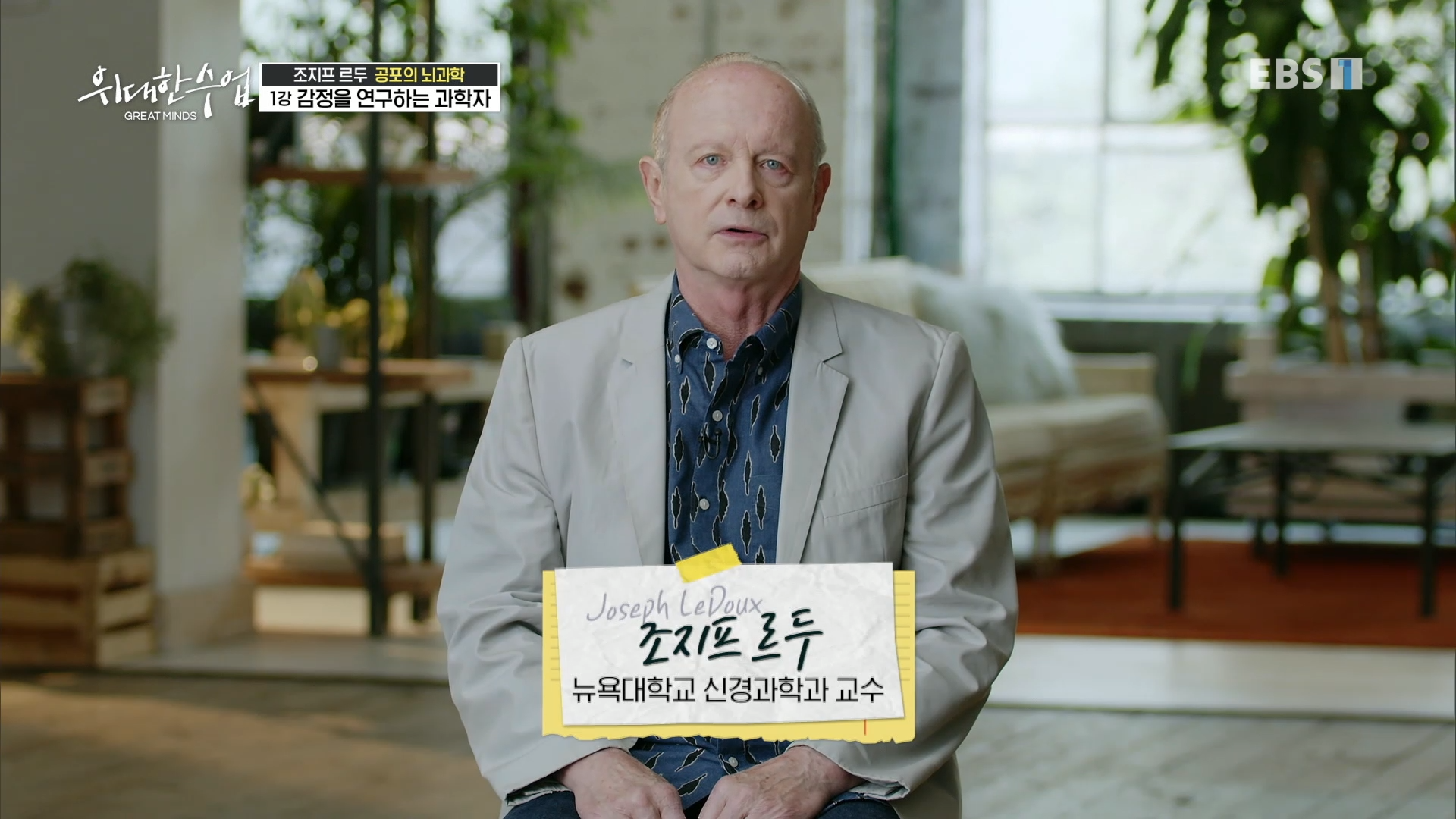 조지프 르두 - 공포의 뇌과학 이전 차시 [위대한 수업 요약] 조지프 르두 - 감정을 연구하는 과학자 공포의 뇌과학 - 1강. 감정을 연구하는 과학자 위대한 수업 다시 보기 링크 : https://www.ebs.co.kr/