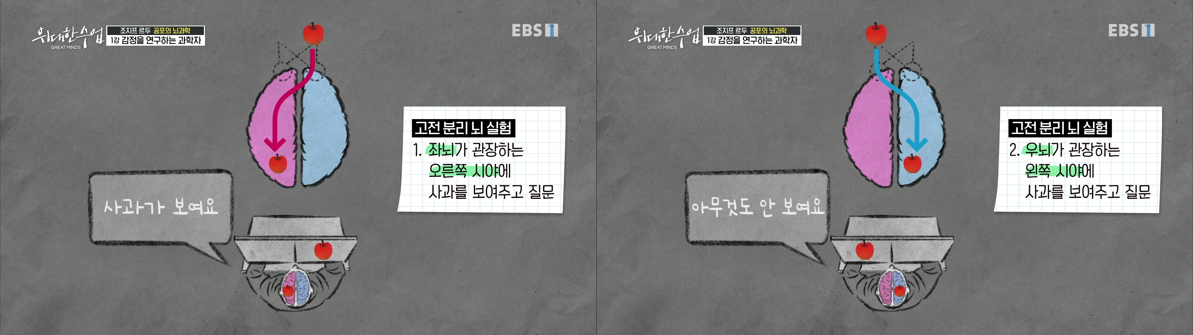 → 오른손이 고른 물건을 정확히 설명하는 좌뇌