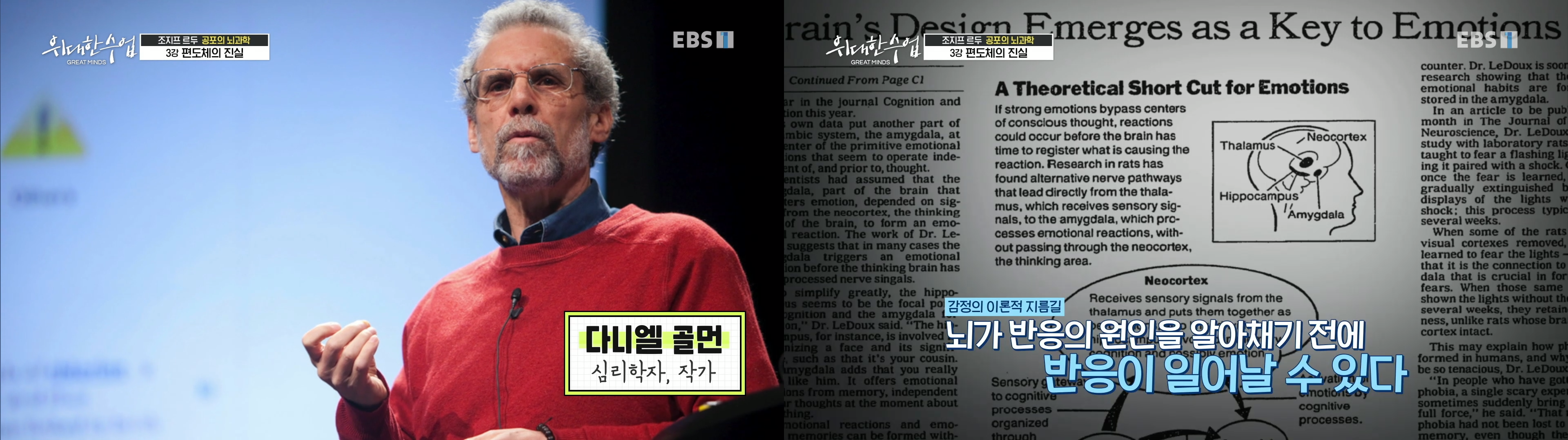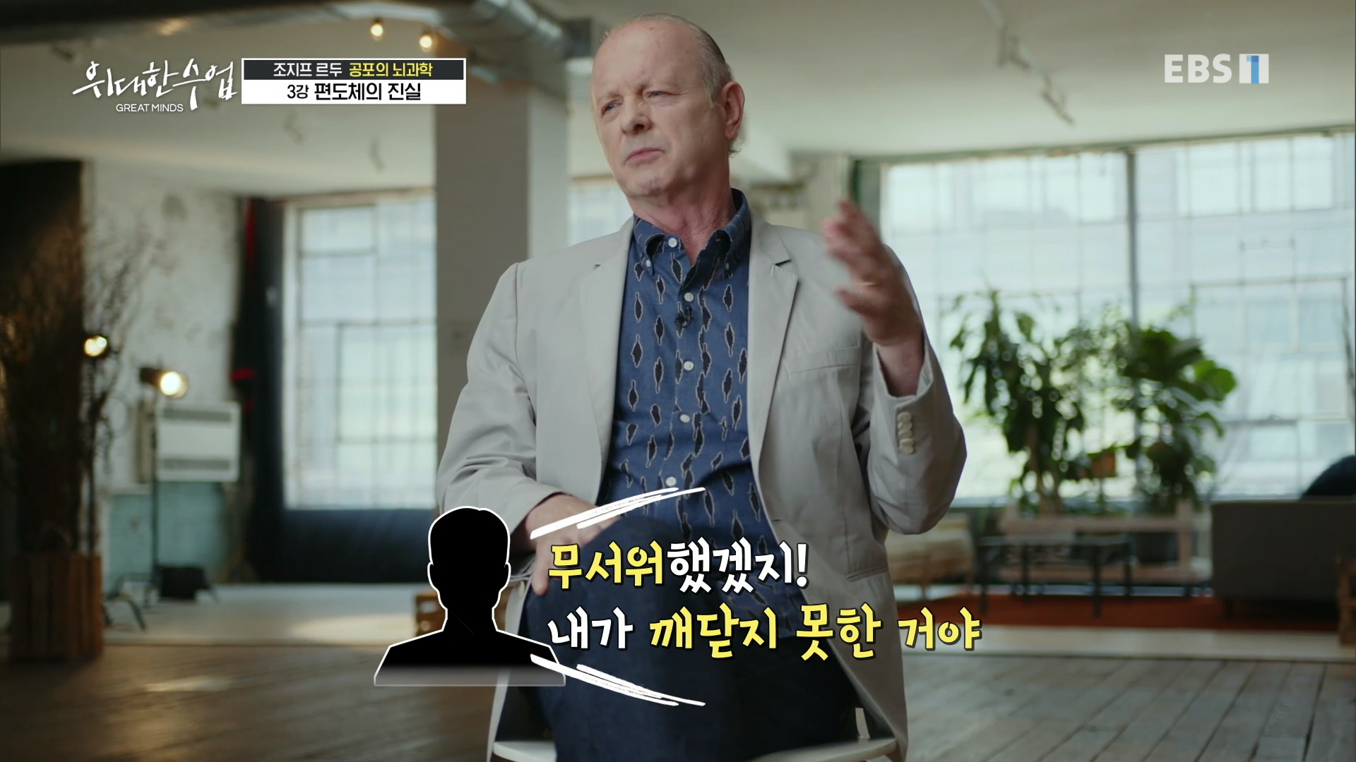 조지프 르두 - 공포의 뇌과학 이전 차시 [위대한 수업 요약] 조지프 르두 - 감정을 연구하는 과학자 공포의 뇌과학 - 1강. 감정을 연구하는 과학자 위대한 수업 다시 보기 링크 : https://www.ebs.co.kr/