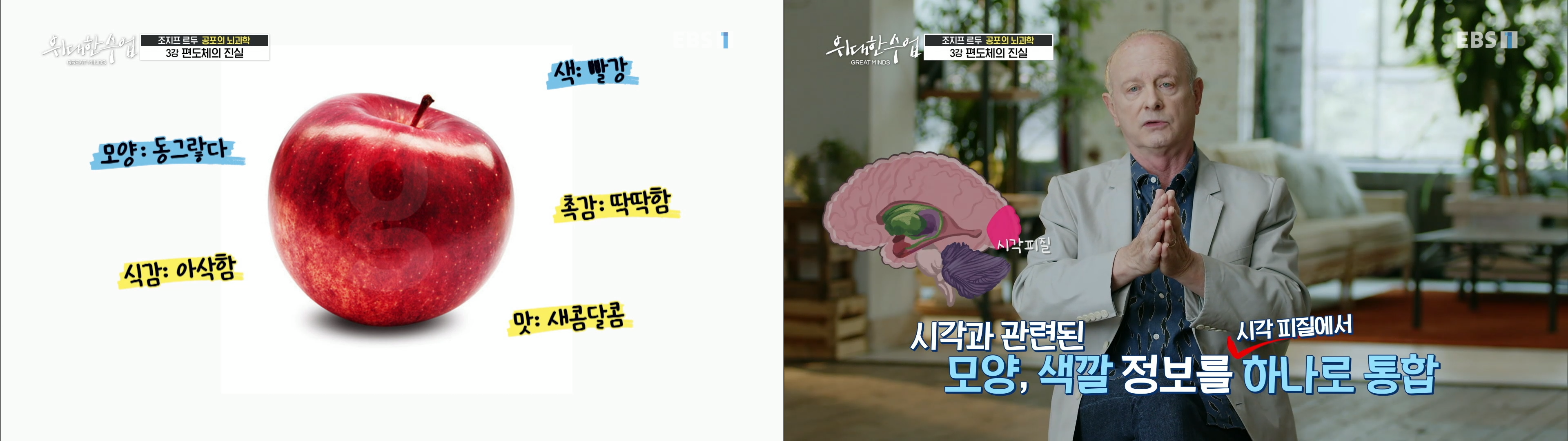 - 시각과 관련된 모양, 색깔 정보를 시각 피질에서 하나로 통합