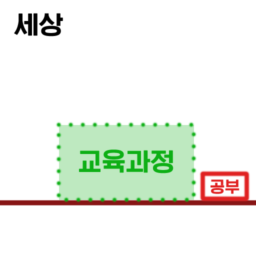 세상에는 정말 다양한 지식들이 있습니다. 그중 다음 세대에게 꼭 알리고 싶은 기초적인 지식을 골라 우리는 교육과정에 넣습니다. 이것을 위의 초록색 상자처럼 채워야 될 공간이라고 비유를 들어볼게요. 그리고 이 교육과정이라는 공간을 공부라는 벽돌로 채워야 된다고 해봅시다.