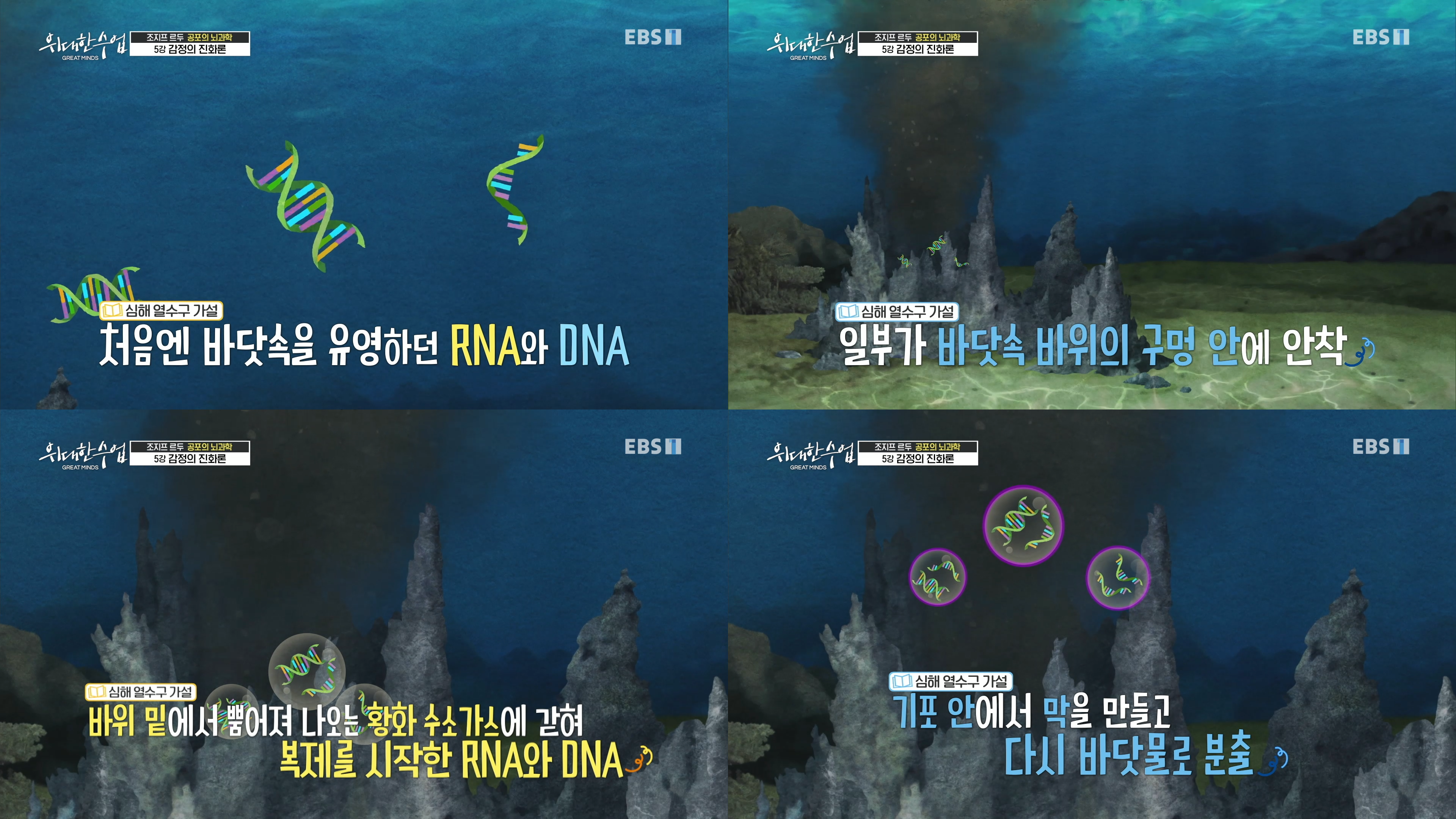 - RNA, DNA는 바닷 속에 있다가 일부가 암반의 구멍에 끼게 됨