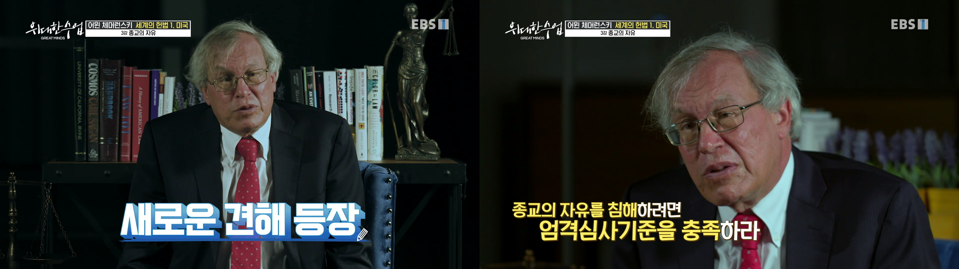지금 보수적인 대법관들은 일반법에 차별 금지 적용에서 종교적 예외를 인정하길 원하고 있고 진보적 대법관은 이에 반대하면서 차별을 중단시켜야 한다고 주장합니다. 한국이든 미국이든 어느 나라가 됐든 법에서는 언제나 자유와 평등 사이에 긴장이 자리합니다. 차별을 금지하는 법은 차별할 자유를 제한하는 것입니다. 지난 50년간 미국 사회는 차별을 중단하는 것이 차별의 자유를 보장하는 것보다. 더 중요하다고 생각해 왔습니다. 하지만 이제 미 대법원의 보수적인 대법관들은 종교적 자유가 차별 반대법보다 더 중요하다고 말하면서 자신들은 종교 행사의 자유 조항을 수호하고 있다고 말합니다. 국교 금지 조항과 종교 행사의 자유 조항에 대한 실질적 이념적 변화가 일어난 것이죠. 과거 국교 금지 조항은 종교 분리의 원칙을 따랐습니다. 하지만 이제 종교에 대한 수용적 입장을 따르고 전에 없던 방식으로 종교를 정부 활동의 일부로 허용하며 종교를 지원하는 조항이 됐습니다. 종교 행사의 자유 조항과 관련해서 과거 법원은 종교를 이유로 일반법 적용에 예외를 두면 안 된다고 말했습니다. 그러나 이제 법원은 기꺼이 종교적 자유를 보장하고 그러한 예외를 적용하는 것을 원하고 있습니다. 법에는 언제나 긴장이 존재합니다.